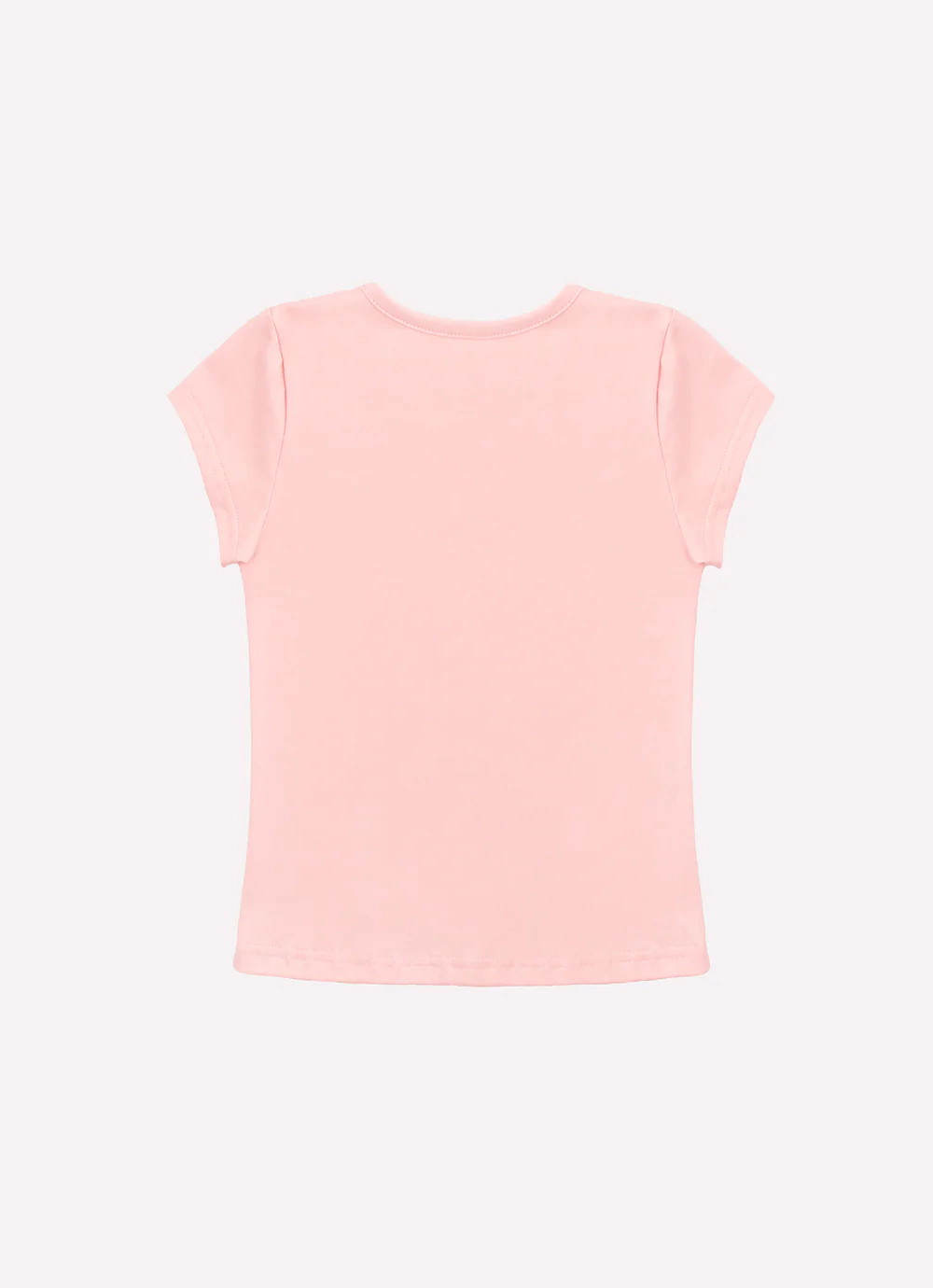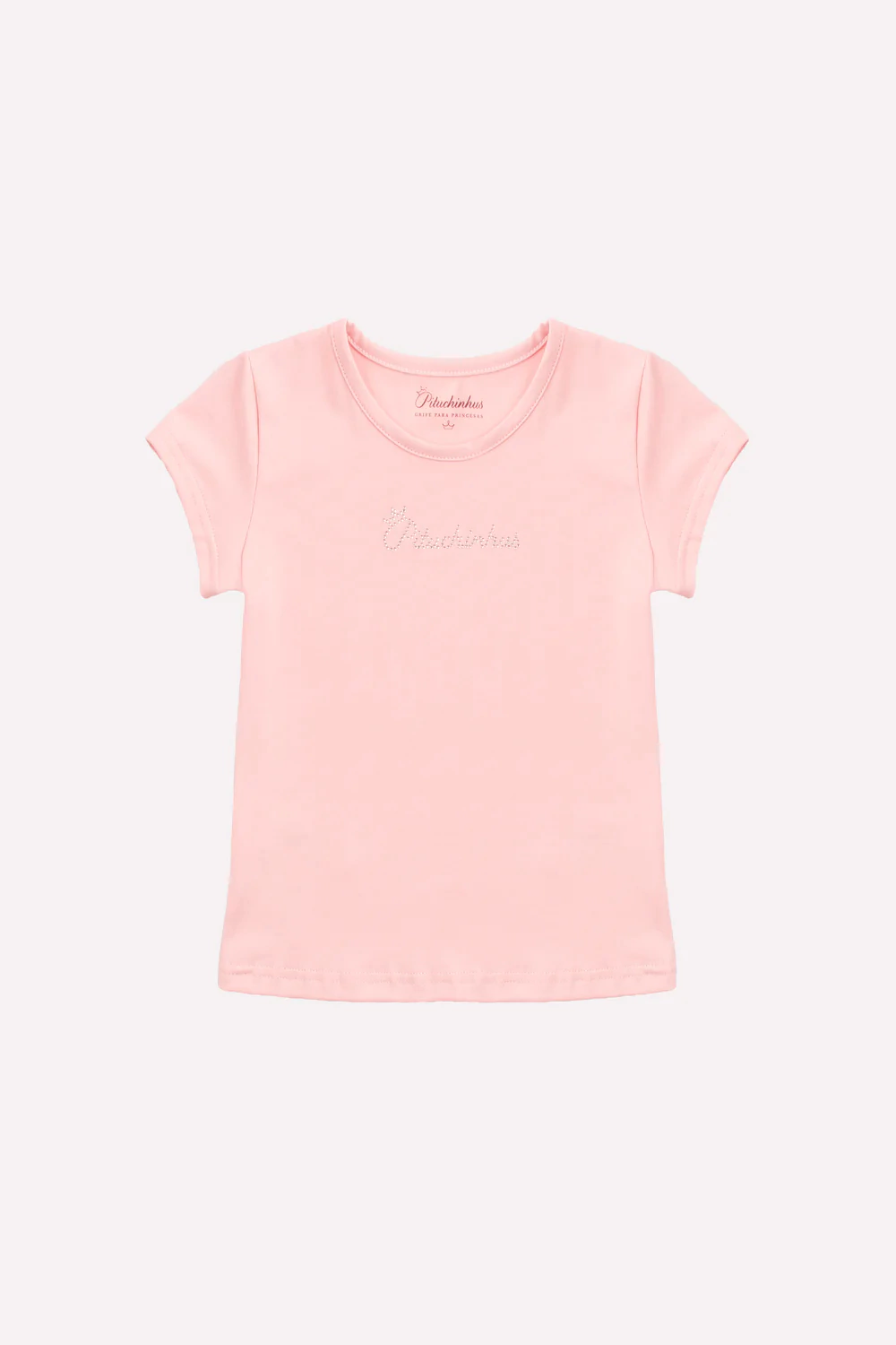 Blusa manga curta de algodão. Gola redonda. Detalhe frontal com aplicação do logo Pituchinhus de cristal. Esta blusa é confortável e atemporal.