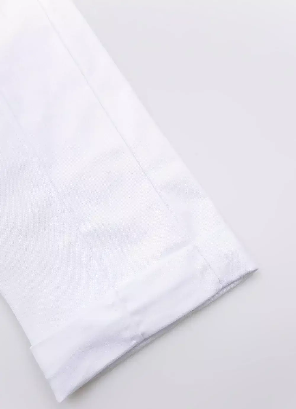 Calça reta de sarja Pituchinhus Al Mare com recortes, cós de elástico com laço poá decorativo e bolsos faca com aplicação de cristais. Confortável e atemporal.