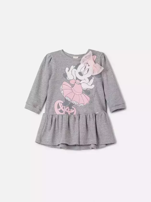 Encante as pequenas com este adorável vestido cinza estampado com a Minnie, perfeito para um visual casual e cheio de estilo. Com detalhe em babado na barra e uma delicada aplicação de laço em tule rosa na parte frontal, ele traz um toque lúdico e gracioso. As mangas longas proporcionam conforto nos dias mais frios, enquanto o tecido macio garante liberdade de movimento para brincar e se divertir. Uma peça que une praticidade e charme, ideal para qualquer ocasião. Ref.: L2456